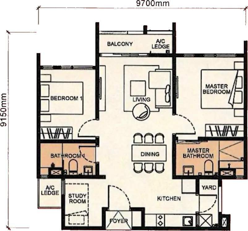 3 min walk to LRT and direct access to KL Sentral, TRX & Pavilion KL.