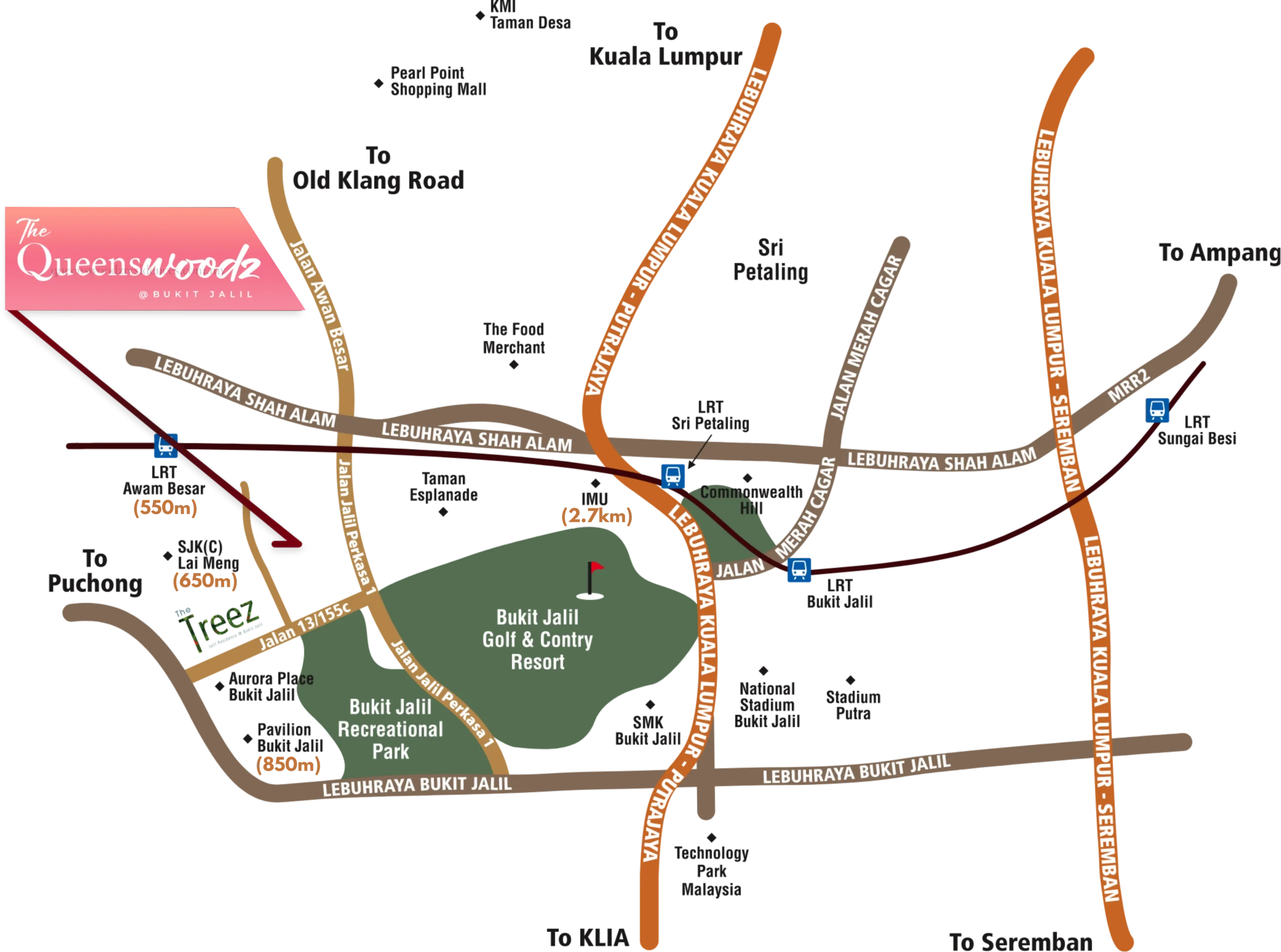 Strategically located just 900m from Awan Besar LRT and 3 minutes to Pavilion Bukit Jalil, The Queenswoodz offers front-row access to elite amenities, major highways (KESAS, MEX, SUKE), and lush greenery like Bukit Jalil Recreational Park & Golf Resort — all in one prestigious KL address.
